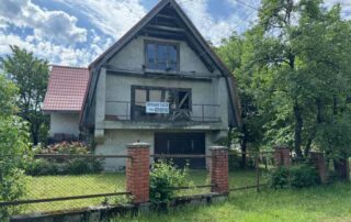 2. Недобудований двохповерховий будинок, де розплановані кімнати, опалення з чавунними батареями та окремо побудований камін. На першому (підвальному) поверсі є можливість для розташування складу, гаражу та літньої кухні з виходом у сад. На мансарному поверсі можливо розташувати кімнату або ж оранжерею для квітів. Загальна площа 150 кв м